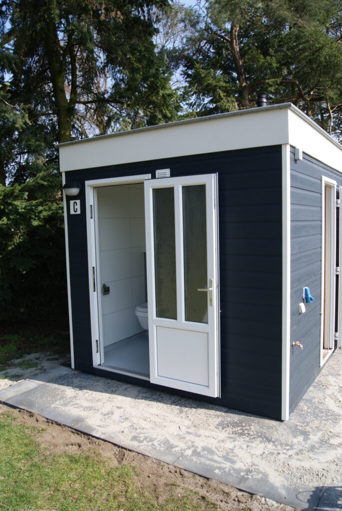 Beide sanitairgebouwen/ prive sanitair units zijn uitgevoerd met een zwevend closet, inloopdouche en een wastafel, de warmwatervoorziening gaat middels een elektrische boiler. De seizoenplaatsen beschikken over 10 Amperé elektra en uw eigen water tappunt en afvoerputje.